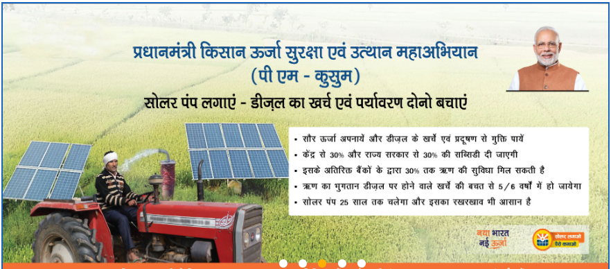 PM-KUSUM (Pradhan Mantri Kisan Urja Suraksha evam Utthaan Mahabhiyan) Scheme, has been launched by the Ministry of New and Renewable Energy (MNRE) for setting up subsidized solar pumps and distributed solar power plants across the country. It is one of the biggest initiatives in the world to provide clean energy to more than 3.5 million farmers across India. On-Demand solution.